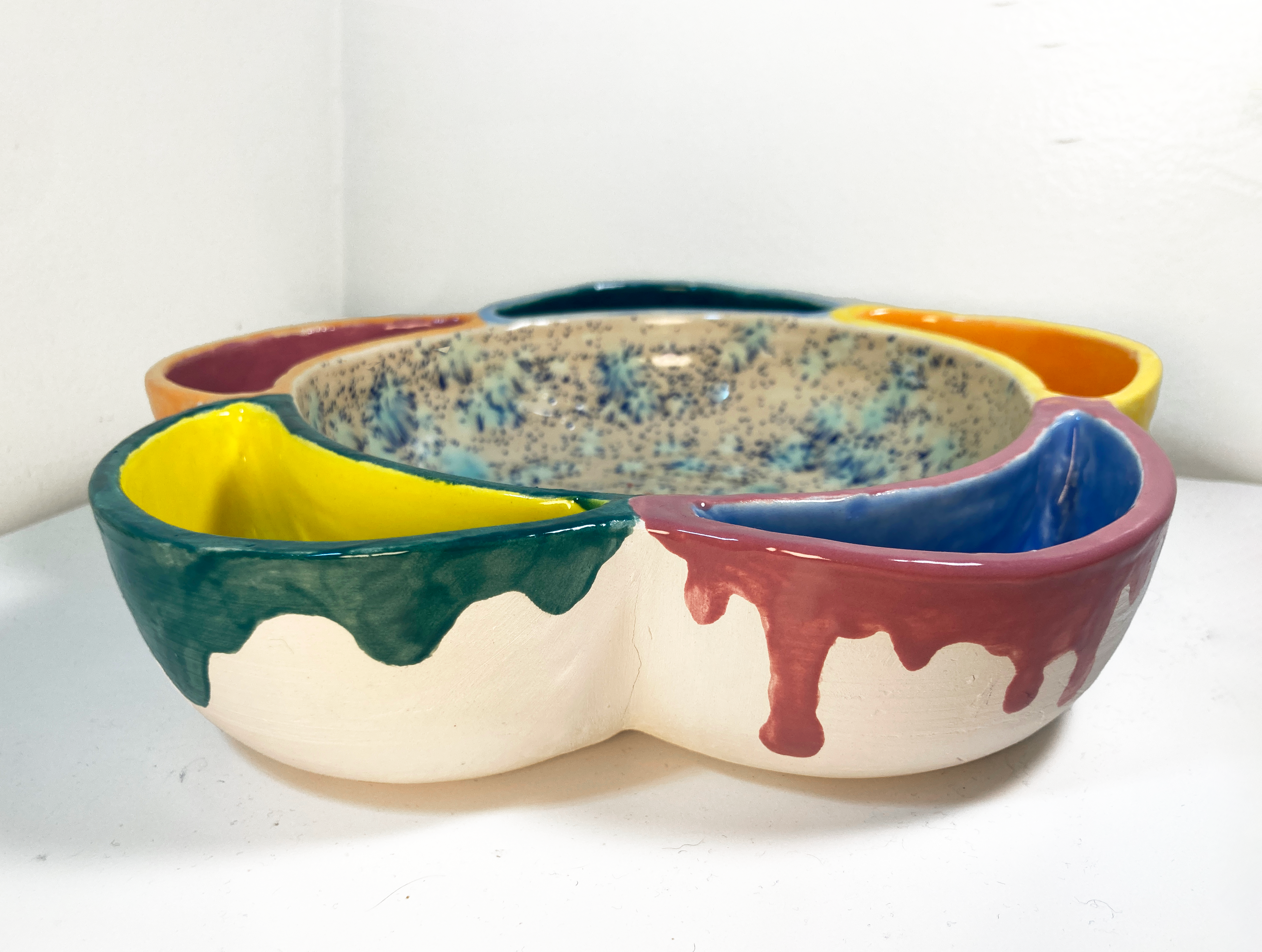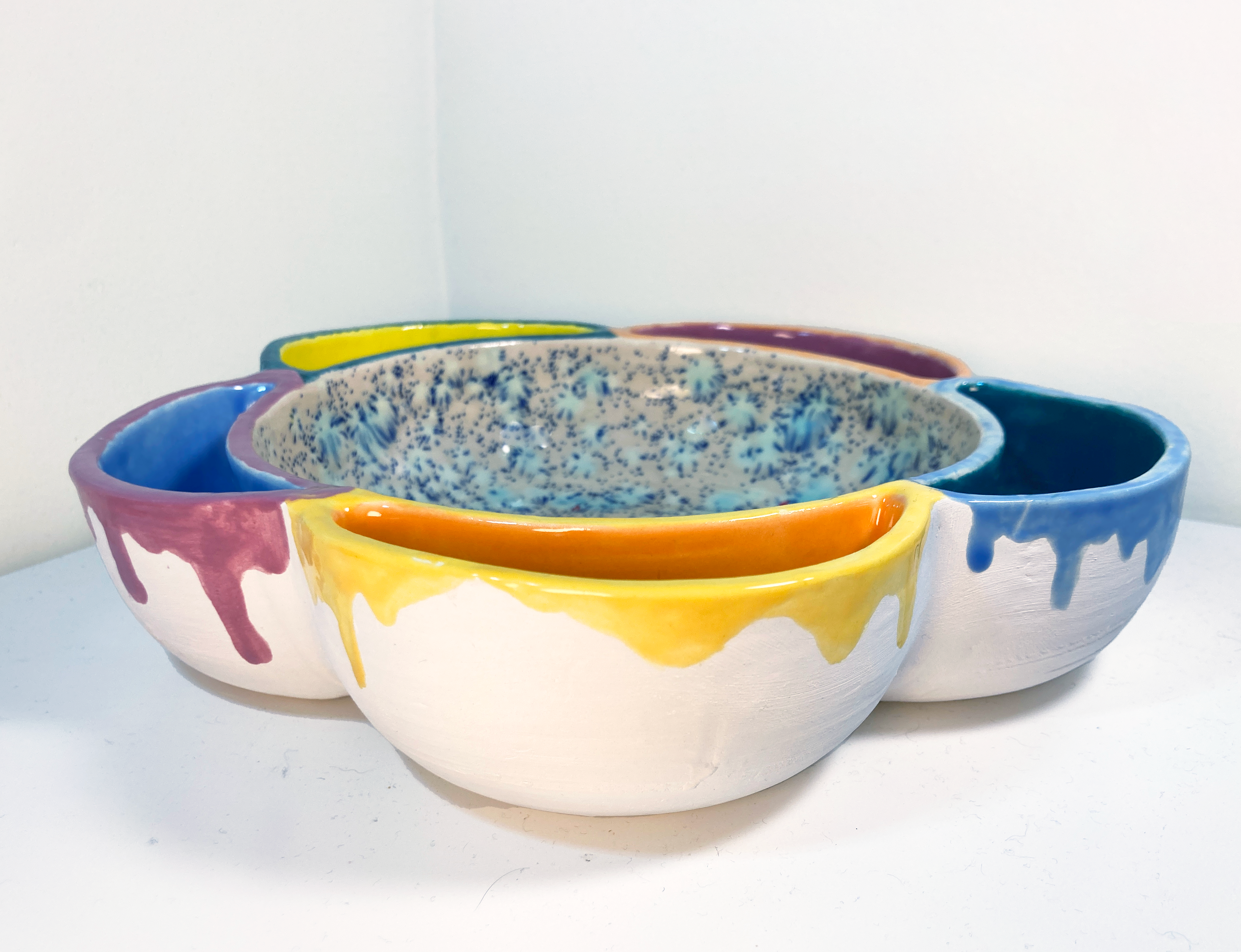 In an attempt to challenge myself with more complex forms, I created a play on a chip and dip in the shape of a flower.