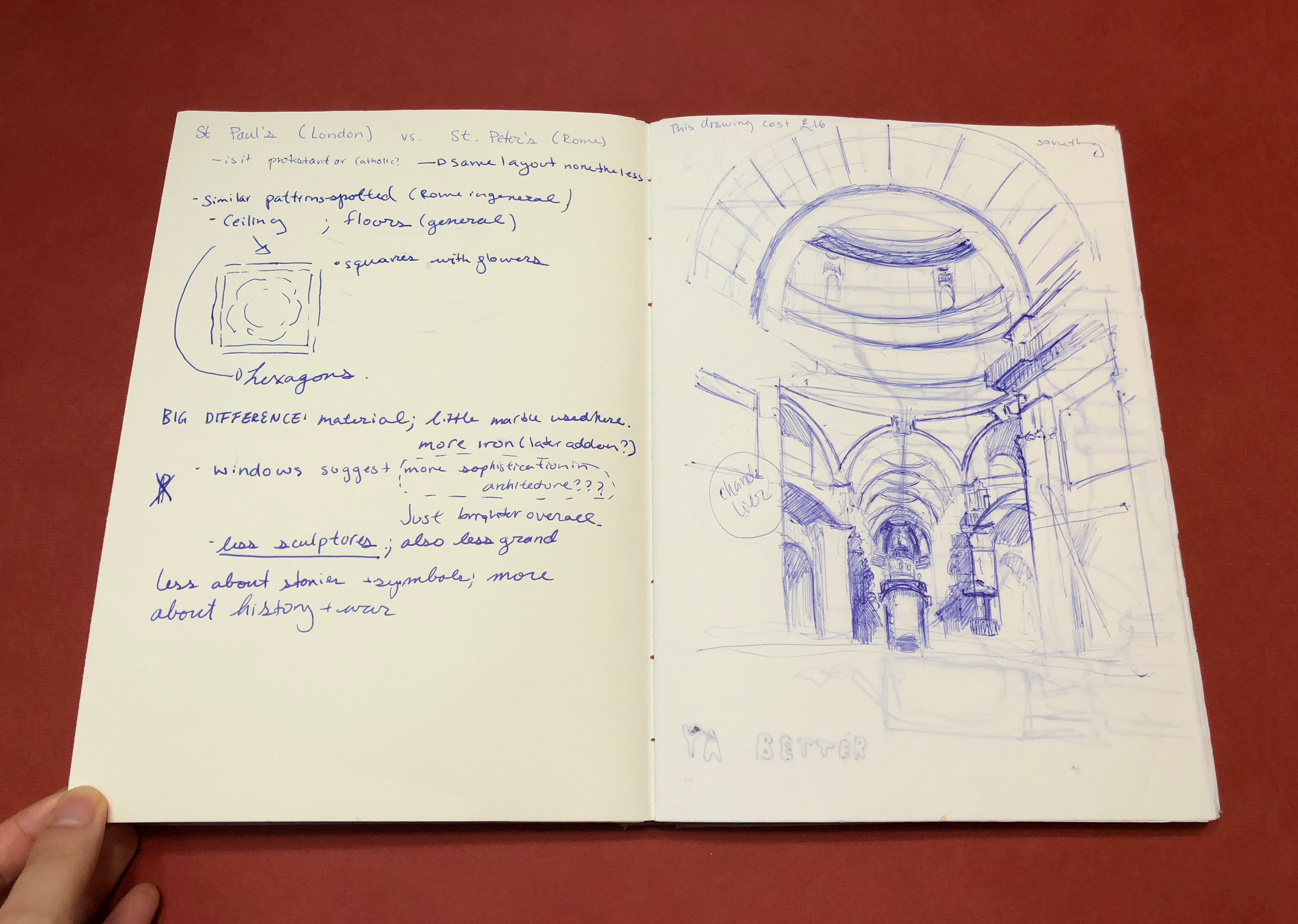 A sketchbook documenting my time in London. Exploring light, transparency, proportions, symmetry, and new ways in thinking about my visual interpretation of the world around me.